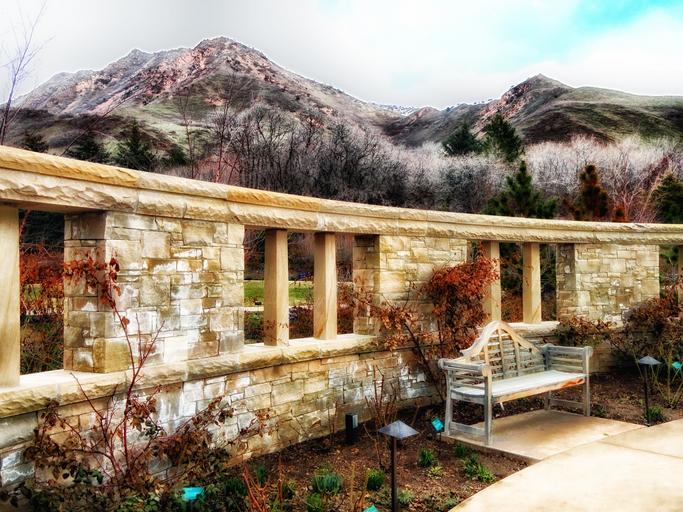 Keywords: arboretum salt lake city utah mountains wall trees forest hdr architecture