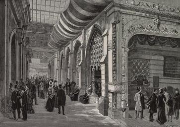 Keywords: Arcades latérales de la section portugaise dans le palais du Champ-de-Mars.jpg Portuguese section in the Palais du Champ-de-Mars during the Paris 1878 World Fair The outside façade of the Portuguese exhibit was modelled after the Batalha cloisters which had been built by the Dominicans in the South of the country at the end of the fourteenth century The late gothic style that characterized the original building would have been particularly appreciated at the time of the fair since European nineteenth-century architecture had been influenced by a renewed taste for the gothic 1879 engraving 16 2 x 22 7 cm Institution Brown University Library object history exhibition history credit line Published in de Vandière Simon L' Exposition universelle de 1878 illustrée Paris Calmann Lévy 1879 accession number 2-SIZE T802 C1 E9x 1879 125417878187581 PD-old-100 Palais du Champ-de-Mars 1878 Engravings of Paris 1879 engravings Images of Paris from the Brown University Library L'Exposition universelle de 1878 illustrée Replicas of Manueline buildings |