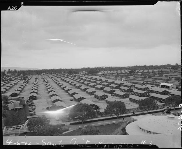 | Keywords: Arcadia, California. Bird's-eye view of quarters for evacuees of Japanese ancestry at Santa Anita a . . . - NARA - 537033.tif Scope and content The full caption for this photograph reads Arcadia California Bird's-eye view of quarters for evacuees of Japanese ancestry at Santa Anita assembly center Evacuees will be transferred later to War Relocation Authority centers for the duration General notes 537033 Local identifier 210-G-B406 Department of the Interior War Relocation Authority 02/16/1944 - 06/30/1946 NARA-Author Albers Clem Photographer 8452194 <br /> Still Picture Records Section Special Media Archives Services Division NWCS-S National Archives at College Park 8601 Adelphi Road College Park MD 20740-6001 1942-04-06 Record group Record Group 210 Records of the War Relocation Authority 1941 - 1989 Record group ARC 537 Central Photographic File of the War Relocation Authority compiled 1942 - 1945 Series ARC 536000 File unit File unit ARC Variant control numbers NAIL Control Number NWDNS-210-G-B406 yes Other versions <gallery> File Arcadia _California _Bird's-eye_view_of_quarters_for_evacuees_of_Japanese_ancestry_at_Santa_Anita_a_ _ _ _-_NARA_-_537033 tif tif File Arcadia _California _Bird's-eye_view_of_quarters_for_evacuees_of_Japanese_ancestry_at_Santa_Anita_a_ _ _ _-_NARA_-_537033 jpg jpg </gallery> NARA-cooperation PD-USGov Santa Anita Assembly Center NARA TIF images with categorized JPGs |