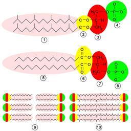 | Keywords: Archaea membrane.svg Archaeal membrane structure Adapted from http //www ucmp berkeley edu/archaea/archaeamm html Up archaeal membrane 1-isoprene sidechain 2-ether linkage 3-L-glycerol 4-phosphate moieties Medium bacterial and eukaryan membrane 5-fatty acid 6-ester linkage 7-D-glycerol 8-phosphate moieties Bottom 9-lipid bilayer in bacteria eukarya and most archaea 10-lipid monolayer in some archaea self-made using http //www xfig org xfig 2007-08-30 Franciscosp2 Archaea diagrams Ether lipids |