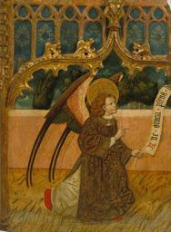 | Keywords: Archangel Gabriel from an Annunciation - Google Art Project.jpg ~ 1450 466155 Unknown /collection/museu-nacional-dart-de-catalunya/artwork/archangel-gabriel-from-an-annunciation-unknown/574629/ author /collection/museu-nacional-dart-de-catalunya/ Museu Nacional d'Art de Catalunya - MNAC Barcelona 497131 http //www mnac cat/ 12/28/2011 4 45 04 PM /collection/museu-nacional-dart-de-catalunya/artwork/archangel-gabriel-from-an-annunciation-unknown/574629/ 1450 Religion Tempera and gold leaf on wood True 1128 574629 True 1450 Around 1450 /collection/museu-nacional-dart-de-catalunya/level/ground-floor/2552108/ Ground floor 3/24/2012 5 16 49 AM 114748-000 http //art mnac cat/fitxatecnica html;jsessionid inventoryNumber 114748-000 lang en Museu Nacional d'Art de Catalunya Painting 1450 1460 w830 x h1128 x d103 cm Around 1450 False 0 734375 Object /collection/museu-nacional-dart-de-catalunya/level/ground-floor/2552108/room-24/588598/ Room 24 archangel-gabriel-from-an-annunciation-unknown Archangel Gabriel from an Annunciation a 830 Donated by 'Doña Pilar Rabal Rabal in memory of her husband Pedro Fontana Almeda Barcelona 1976' 114748-000 Tempera and gold leaf on wood Religion special url_id RQHB2hhDmK4Vfg PD-old-100 Renaissance and Baroque paintings in the MNAC Google Art Project works by unknown artist Angels with banners 1450s paintings Tempera on panel Angels on the ground Gabriel from Annunciation scene 15th century angels Depictions of Gabriel as female or androgynous Ave Maria inscription Ornamental textiles in art |