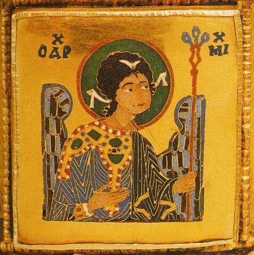 Keywords: Archangel Michael on the Holy Crown of Hungary.jpg author XIth century object history credit line accession number own scanned by Szilas from A magyar Szent Korona by Tóth Endre Szelényi Károly Kossuth 2000 Budapest PD-old-100 Holy Crown of Hungary Icons of Michael from Deesis |