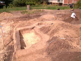 Keywords: Archelogic site110.jpg en Komin archelogic site Hlavní crossing Brno Czech archelogic site were destroyed by bulding garage own I Sáček senior Archaeology in Brno-Komín