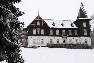 Keywords: architecture building cabin chalet cold cottage covered frozen house mountain quiet resort rural ski snow traditional white winter wood