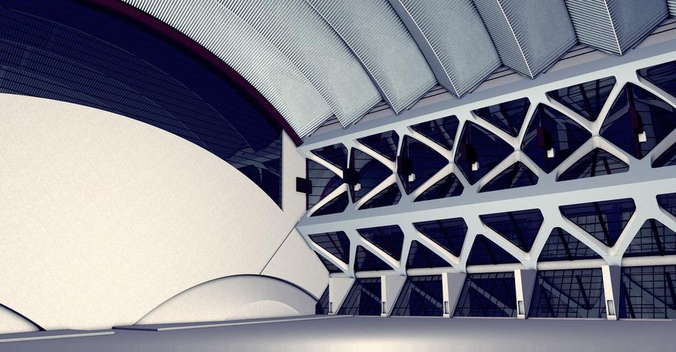 Keywords: architecture design hall purpose built function sports hall transport beings logistics production engineer construction industry virtual drawing construction element visualization modern scene presentation