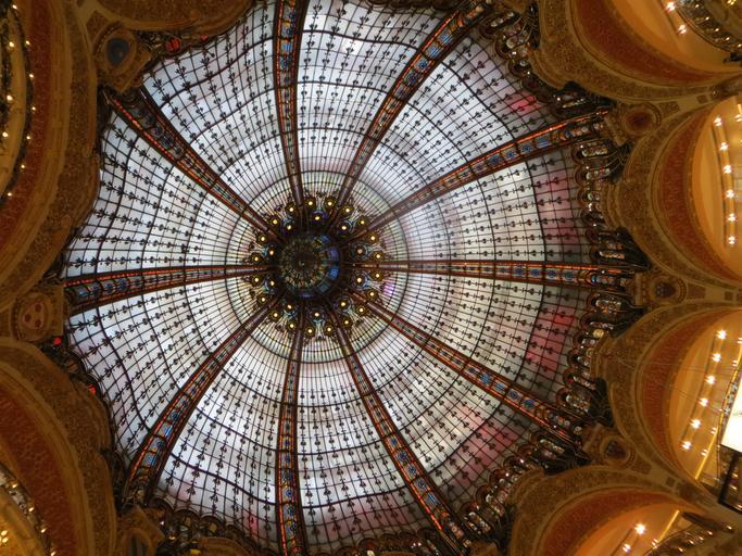 Keywords: architecture landmark famous galerie lafayette paris france romantic stained glass