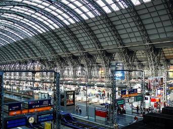 Keywords: architecture train ride railway station platform bahnsteigkante railway traffic banks germany europe remote traffic frankfurt frankfurt main frankfurt am main germany central station hesse country mainhatten travel sack station cities tourism traffic stahlbau construction building city steel technology strong