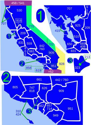 | Keywords: Area codes CA.svg en Master map of California Area Codes <br/> Note that the following message is a template for all California area codes which with the exception of this map show their specific area code on this map in red This map shows all area codes so none of them are specifically marked es Maestro mapa de los códigos de área de California <br/> Tenga en cuenta que el siguiente mensaje es una plantilla para todos los códigos de área de California los cuales con la excepción de este mapa muestran su código de área específico en este mapa de color rojo Este mapa muestra todos los códigos de área por lo que ninguno de ellos están específicamente marcados fr Carte maîtresse des indicatifs régionaux area codes de Californie <br/> Notez que le message qui suit est un modèle pour tous les indicatifs régionaux Californie Cette carte est générale et ne met en exergue aucun indicatif Dans les autres cartes l'indicatif régional spécifique est surligné en rouge de Master Map of California Area Codes <br/> Beachten Sie dass die Meldung eine Schablone für alle Kalifornien Bereich Codes die mit Ausnahme von dieser Karte zeigen ihre spezifischen Vorwahl auf dieser Karte in rot ist Diese Karte zeigt alle Vorwahlen so keiner von ihnen sind speziell markiert 2011-09-05 Previous Version 2008-07-25 own Rfc1394 Area code CA map list Locator maps of area codes of California 01 SVG maps of California 01 SVG maps of the United States California |