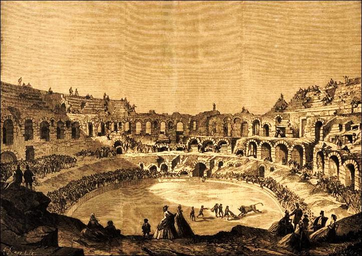 View Original:Arènes_de_Nîmes_première_corrida_en_1853.jpg (1000x708)