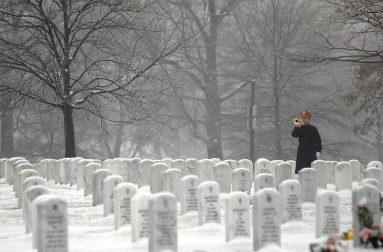 MAKE A MEME View Large Image arlington national cemetery washington dc bugler taps memorial winter snow ice trees nature outside somber resting place graves memory