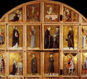 | Keywords: Arliquiera. Vecchietta. 1445. Siena, Pinacoteca.jpg Artwork du peintre Il Vecchietta Arliquiera armoire peinte qui servait à abriter les reliques 1445 1445 Institution Pinacoteca Nazionale di Siena accession number object history credit line http //www wga hu/frames-e html /html/v/vecchiet/index html PD-old-100 Vecchietta Santa Maria della Scala - Sagrestia Vecchia Polyptychs in Italy Siena Paintings in the Pinacoteca Nazionale Siena 1445 paintings Renaissance paintings in Siena Images from Web Gallery of Art |