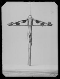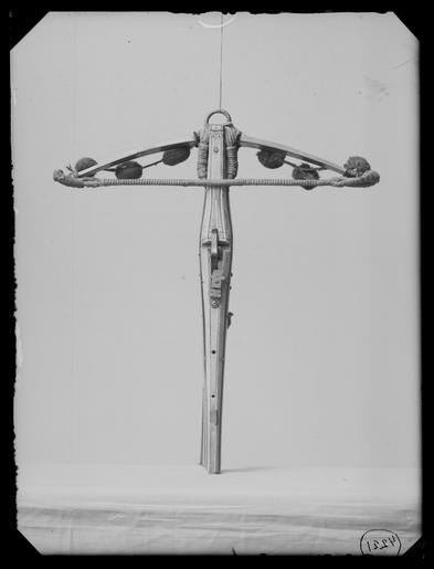 | Keywords: Armborst, Tyskland, 1590-talet - Livrustkammaren - 53493.tif LSH artwork sv Båge av stål med på ena sidans baksida stämpel Stöckel II nr 6451 På bågens framsida flätat snöre med på vardera sidan tre ursprungligen blå bollar av ylle Bågen fästad vid stocken med snörning Tjock tvinnad sträng av hampa <br/>Lås med nöt och stränghållare av stål och snälltryck samt säkringsnyckel <br/>Stock av ben med smala inlagda band av valnöt och ebenholts på sidorna i inv 1867 angivet som elfenben mahogny och ebenholts Kolv med liten vinge Uppfällbart rektangulärt sikte av stål Rak baktill nedåtböjd varbygel lindad med ursprungligen gult och blått ullgarn med tofs På stockens ovansida pilhållare av mörkt horn samt framtill bygel av stål original caption decade 1590 string - steel - woolen Färg blå material ylle - hemp - walnut - ebony - wool yarn Färg gul blå material ullgarn - horn g 2040 size mm 589 525 LRK Alexander Ludvig Soldin Grosshandlare place of origin DE original filename LN_E00062 43465 inventory number LRK 6822 53493 CC0 Armborst Tyskland 1590-talet - Livrustkammaren - 53493-negative tif Media contributed by LSH 2015-11 Crossbow images from Livrustkammaren |