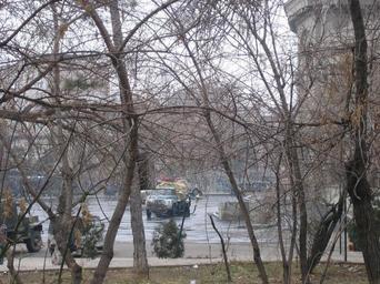 | Keywords: Armenian Presidential Elections 2008 Protest Day 11 - Opera Square water cleaning.jpg The 11th day of Armenian presidential election protests At 7 30 am the peaceful camp-in protest at Liberty Square in Yerevan was violently ended by Armenian special forces which used truncheons and electric shock devices to disperse the crowd of around 1 000 <br/><br/>In this picture taken around noon government employees use large water tankers to clean the area of debris and blood while riot police and the army have cordoned off Liberty Square Visible are army transport vehicles at the bottom left and riot police marching in the center right; note that this is before the state of emergency was declared by the government at 10 pm Own 2008-03-01 Serouj 40 11 7 25 N 44 30 54 13 E Demonstrations and protests relating to the Armenian presidential elections 2008 Freedom Square Yerevan |