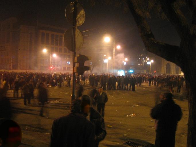 Keywords: Armenian Presidential Elections 2008 Protest Day 11 - 1238AM Miasnikyan Square - general view southwest.jpg The 11th day of Armenian presidential election protests At 7 30 am the peaceful camp-in protest at Liberty Square in Yerevan was violently ended by Armenian special forces which used truncheons and electric shock devices to disperse the crowd of around 1 000 At 12 30 pm a new crowd marches to the French Embassy in a spontaneous demonstration barricade themselves using abandoned police buses and grow in number to around 150 000 By 12 am the bulk of the approximately 2 000 demonstrators left in the area are at Miasnikyan Square in front of the French Embassy while only tens of people are at the site of the looting of a grocery store near the intersection of Mashdots Ave and G Lusavorich Street a quarter mile northwest of the location of this camera The nearest police are stationed at Shahuman Square 1/3 of a kilometer northeast of the location of this camera Police allow looting to continue in the area of Mashdots Ave and G Lusavorich for several hours as government TV crews film tens of people looting the grocery store <br/><br/>In this picture 12 38 AM general view of Miasnikyan Square viewed south-west Own 2008-03-02 Serouj 40 10 29 99 N 44 30 20 42 E Demonstrations and protests relating to the Armenian presidential elections 2008 |