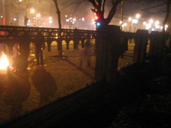 Keywords: Armenian Presidential Elections 2008 Protest Day 11 - 1238AM Miasnikyan Square - park fence for rods.jpg The 11th day of Armenian presidential election protests At 7 30 am the peaceful camp-in protest at Liberty Square in Yerevan was violently ended by Armenian special forces which used truncheons and electric shock devices to disperse the crowd of around 1 000 At 12 30 pm a new crowd marches to the French Embassy in a spontaneous demonstration barricade themselves using abandoned police buses and grow in number to around 150 000 By 12 am the bulk of the approximately 2 000 demonstrators left in the area are at Miasnikyan Square in front of the French Embassy while only tens of people are at the site of the looting of a grocery store near the intersection of Mashdots Ave and G Lusavorich Street a quarter mile northwest of the location of this camera The nearest police are stationed at Shahuman Square 1/3 of a kilometer northeast of the location of this camera Police allow looting to continue in the area of Mashdots Ave and G Lusavorich for several hours as government TV crews film tens of people looting the grocery store <br/><br/>In this picture 12 38 AM metal rods from fences of the park adjacent to Miasnikyan Square were salvaged for self-defense by some demonstrators Own 2008-03-02 Serouj 40 10 29 99 N 44 30 20 42 E Demonstrations and protests relating to the Armenian presidential elections 2008 |