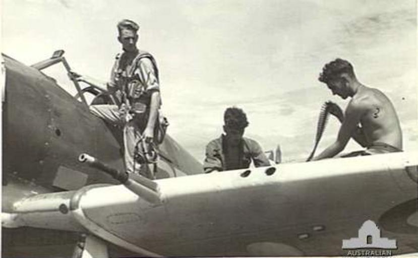 Keywords: Arming 4 Squadron RAAF Boomerang New Guinea Jan 1944 AWM 070132.jpg AWM caption RAMU VALLEY NEW GUINEA 1944-01-02 FLYING OFFICER L G ELLERS 1 WITH LEADING AIRCRAFTMAN A GREY 2 AND LEADING AIRCRAFTMAN K GREENUP 3 ARMOURERS OF A FLIGHT NO 4 TACTICAL RECONNAISSANCE SQUADRON INSPECTING THE MAGAZINES OF A BOOMERANG AIRCRAFT 070132 1944-01-02 Stuckey Norman Bradford Copyright expired - public domain PD-AustraliaGov World War II people of the Royal Australian Air Force World War II forces of Australia in New Guinea Commonwealth Boomerang Commonwealth Boomerang aircrew No 4 Squadron RAAF Norman Bradford Stuckey |