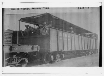 | Keywords: Armored train, Mexico(2).jpg Bain News Service publisher Mexico- Fed Armored train between ca 1910 and ca 1915 1 negative glass ; 5 x 7 in or smaller Notes Title from unverified data provided by the Bain News Service on the negatives or caption cards Forms part of George Grantham Bain Collection Library of Congress Subjects Mexico Format Glass negatives Rights Info No known restrictions on publication Repository Library of Congress Prints and Photographs Division Washington D C 20540 USA http //hdl loc gov/loc pnp/pp print hdl loc gov/loc pnp/pp print General information about the Bain Collection is available at http //hdl loc gov/loc pnp/pp ggbain hdl loc gov/loc pnp/pp ggbain Persistent URL http //hdl loc gov/loc pnp/ggbain 14291 hdl loc gov/loc pnp/ggbain 14291 Call Number LC-B2- 2828-10 http //www flickr com/photos/8623220 N02/4256325337/ Mexico- Fed Armored train LOC Uploaded by kalatorul http //www flickr com/people/8623220 N02 The Library of Congress http //www loc gov/rr/print/195_copr html noknown PD-Bain LOC-image ggbain 14291 File Upload Bot Magnus Manske January 25 2010 Trains of Mexico |