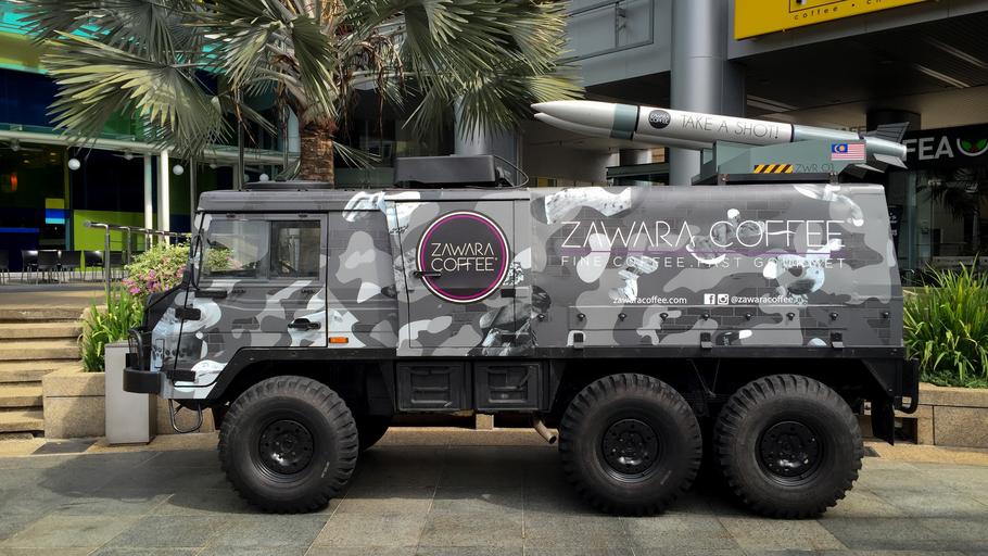 Keywords: armoured vehicle military coffee display vehicle food truck