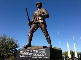 Keywords: army men military persons helmet soldiers fight war vietnam monument statue