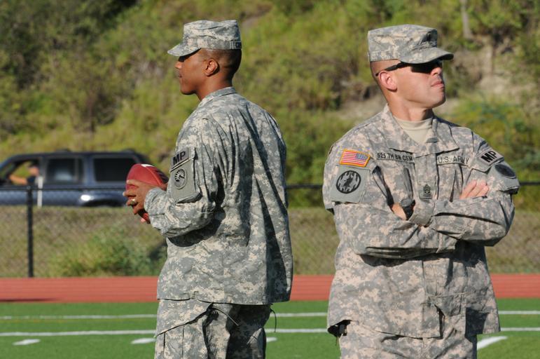 Keywords: Army-Navy Spirit Spot DVIDS344977.jpg en Joint Task Force Guantanamo Joint Detention Group commander Col Donnie Thomas and 525th Military Police Battalion Command Sgt Maj Daniel Borrero stand by to participate in an Army Navy Spirit video recording on Cooper Field Nov 16 Soldiers from Joint Task Force Guantanamo and sailors from Naval Station Guantanamo participated in the video spot which will be sent to CBS Sports to show esprit de corps for the Army Navy football game which will be aired on their network Dec 11 2010-11-16 Petty Officer 1st Class David P Coleman https //www dvidshub net/image/344977 100925-N-+++++-048 2010-12-01 10 42 GUANTANAMO BAY CU PD-USGov-Military-Navy Joint Task Force Guantanamo Guantanamo Bay Images from DoD uploaded by Fæ 525th Military Police Battalion United States |