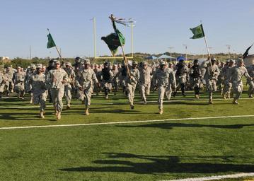 Keywords: Army-Navy Spirit Spot DVIDS345032.jpg en Soldiers from the Joint Task Force Guantanamo charge down field during an Army Navy Spirit video recording that was shot with Joint Task Force Guantanamo Army soldiers and Naval Station Guantanamo Sailors on Cooper Field Nov 16 CBS Sports solicited video spots that promote esprit de corps for the Army versus Navy football game which will be aired on their network Dec 11 2010-11-16 Petty Officer 2nd Class Elisha Dawkins https //www dvidshub net/image/345032 101116-N-+++++-946 2010-12-01 12 54 GUANTANAMO BAY CU PD-USGov-Military-Navy Joint Task Force Guantanamo Guantanamo Bay Images from DoD uploaded by Fæ |