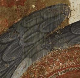 | Keywords: Arnau Bassa - Triptych with Madonna and Child with the Crucifixion and the Annunciation - Walters 37468 - A T Detail S.jpg Circle of The central scene of this altarpiece depicts the enthroned Madonna and Child flanked by angels The Christ Child holds a tiny European goldfinch a symbol of his resurrection The bird is tethered a reminder that in the 14th century such animals were kept as pets by children Angels present Mary with chalices of white flowers alluding to her purity On the left appear the Annunciation and the Crucifixion while Christ's Presentation in the Temple and the Coronation of the Virgin are on the right The delicate punch-work decoration and the slender graceful figures reveal the influence of Sienese painting Catalan artists learned the style and techniques of Italian painting by examining imported Italian works in local churches; some even traveled to Italy to perfect their craft ca 1340 1348 Medieval tempera and gold leaf on panel cm 126 8 184 9 accession number 37 468 1582 Henry Walters Baltimore 1931 mode of acquisition unknown Walters Art Museum Henry Walters Acquired by Henry Walters 1931 The International Style The Arts in Europe Around 1400 The Walters Art Gallery Baltimore 1962 place of origin Catalonia Spain Walters Art Museum license 2D Triptych with Madonna and Child with the Crucifixion and the Annunciation Media contributed by the Walters Art Museum needs category review |