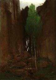 Keywords: arnold bocklin painting art oil on canvas nature outside tree canyon ravine mountain