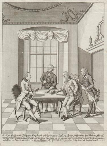 Keywords: Arolsen Klebeband 18 004.jpg Grafik aus dem Klebeband Nr 18 der Fürstlich Waldeckschen Hofbibliothek Arolsen Motiv Karikatur S M der Kayser u der König von Franckreich zusammen in einem Conferenz Zimmer theillen einen Leib Holländer Käs miteinander und deßen komt der König von Preußen auch in diß Zimmer u legt eine Hand auf des Königs von Franckreich Achsel mit der Frage was Sie hier zumachen haben der König von Franckreich gibt zur Antwort wegen Holland der König von Preußen fragt weiter waß diß vor ein Käse seye die Antwort es seye ein Holländer Ihro Churfürstl Durchlaucht von Cölln samlet die Brosamen welche von dem Käs herrunter gefallen auf dem Tisch in einen Korb zusammen Sprechtext Je mange aussi de fromage http //digi ub uni-heidelberg de/fwhb/klebeband18 century 18 1770s 1780s Johann Martin Will laut http //carl kulturen com/web/object/138898 Public Domain due to age The scan is also licensed CC-BY-SA 3 0 DE PD-old-100 Arolsen Klebeband 18 Cheese in art People in rooms in art History of the Netherlands Engravings of Joseph II Holy Roman Emperor Friedrich II of Prussia in engravings Johann Martin Will