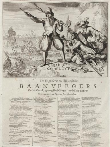 | Keywords: Arolsen Klebeband 18 085.jpg Grafik aus dem Klebeband Nr 18 der Fürstlich Waldeckschen Hofbibliothek Arolsen Motiv Spottflugblatt zur französischen Niederlage in den Seeschlachten von Barfleur und La Hougue De Engelsche en Hollandsche Baanveegers Van het Canaal geveegd by la Houge en de Kaap Barfleur Op den 29 30 en 31 Mey en Juny Anno 1692 http //digi ub uni-heidelberg de/fwhb/klebeband18 1692 possibly after Romeyn de Hooghe after Public Domain due to age The scan is also licensed CC-BY-SA 3 0 DE https //www rijksmuseum nl/nl/collectie/RP-P-OB-82 777 Rijksmuseum http //www britishmuseum org/research/collection_online/collection_object_details aspx objectId 1564530 partId 1 British Museum PD-old-100 Arolsen Klebeband 18 Single sheet prints 1692 engravings Street sweepers in art Engravings by Romeyn de Hooghe Battle of La Hougue Battle of Barfleur |