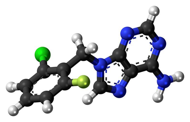 | Keywords: Arprinocid molecule ball.png Ball-and-stick model of the arprinocid molecule an antiparasitic agent Color code 505050 Carbon C black<br> F0F0F0 Hydrogen H white<br> 3C50FA Nitrogen N blue<br> C8FA64 Fluorine F yellow-green<br> 14F014 Chlorine Cl green<br> 2011-08-02 own DS Visualizer Jynto talk Space-filling version cc-zero Images by Jynto Ball-and-stick models Antiparasitic agents Purines Chlorofluorobenzenes | ||||