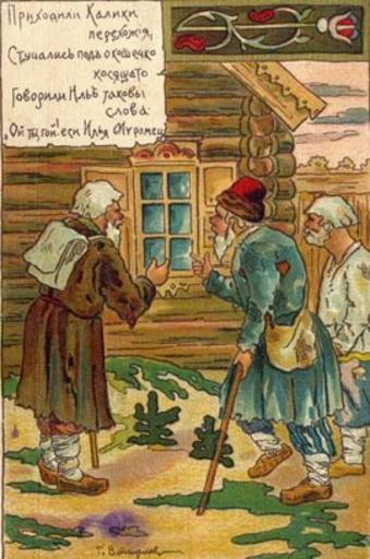 | Keywords: Arrival of wanderers to the Ilya Muromets (Voytsekhovich).jpg en Postcard ru К Илье у омцу п иходят калики пе ехожие отк ытка http //www postcard phalara ru/katalog_tsar/p17_sectionid/128 G Voytsekhovich before 1917 PD-Russia-2008 Russian Bylina Bogatyrs of Voytsekhovich Ilya Muromets |