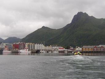 Keywords: Arrivée à Svolvær.jpg Entering the Svolvær harbour Own 2006-07-20 Florian Pépellin <small> Floflo </small> Public domain Svolvær harbour Blåtinden Vågan July 2006 in Norway