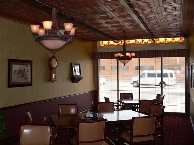 | Keywords: Arrow Hotel interior coffee shop 1.JPG Arrow Hotel in Broken Bow Nebraska The building was constructed in Prairie School style in 1928 and is listed in the National Register of Historic Places It continues to serve as a hotel and restaurant The window in the photo faces north onto E Street own Ammodramus 2010-06-03 Pictures by Ammodramus Taken with Panasonic Lumix DMC-FZ20 Arrow Hotel | ||||