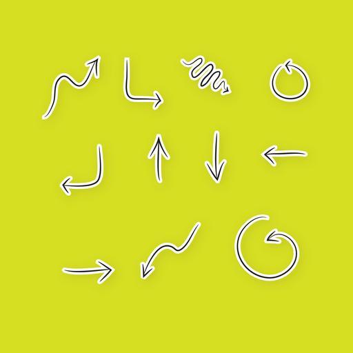 Keywords: arrow line sign circle flat curve button label information design