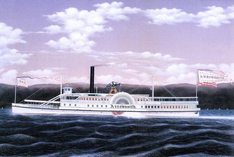 | Keywords: Arrowsmith (steamboat).jpg en Steamboat Arrowsmith painted by James Bard oil on canvas 31657 creator James Bard 1869 Original in private collection as of 1997 Reproduced in Mariner's Museum and Peluso Anthony J Jr The Bard Brothers -- Painting America under Steam and Sail Abrams New York 1997 ISBN 0-8109-1240-6 at page 107 PD-old-100-1923 James Bard 1861-1870 works Steamboats of eastern North America Chesapeake Bay steamboats Ships in the American Civil War | ||||