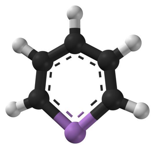 | Keywords: Arsabenzene-Spartan-MP2-3D-balls.png Ball-and-stick model of the arsabenzene molecule C<sub>5</sub>H<sub>5</sub>As Colour code Carbon C black Hydrogen H white Arsenic As purple Structure calculated with http //www wavefun com/products/macintosh/Student/mac_student html Spartan Student 4 1 using the MP2 level of theory and the 6-311+G basis set Image generated in http //accelrys com/products/discovery-studio/visualization/discovery-studio-visualizer html Accelrys DS Visualizer Own 2011-01-07 Ben Mills Benjah-bmm27 Images by Ben Mills Ball-and-stick models Arsabenzene |