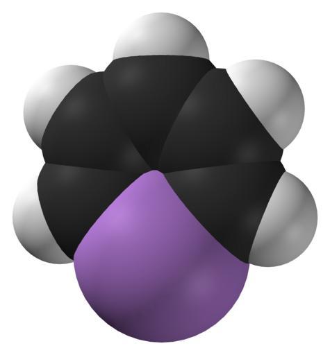 | Keywords: Arsabenzene-Spartan-MP2-3D-sf.png Space-filling model of the arsabenzene molecule C<sub>5</sub>H<sub>5</sub>As Colour code Carbon C black Hydrogen H white Arsenic As purple Structure calculated with http //www wavefun com/products/macintosh/Student/mac_student html Spartan Student 4 1 using the MP2 level of theory and the 6-311+G basis set Image generated in http //accelrys com/products/discovery-studio/visualization/discovery-studio-visualizer html Accelrys DS Visualizer Own 2011-01-07 Ben Mills Benjah-bmm27 Images by Ben Mills Space-filling models Arsabenzene |
