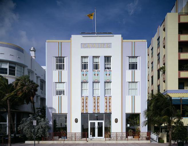Keywords: Art Deco Cavalier Hotel, Miami Beach, Florida LCCN2011631110.tif 1 transparency color ; 4 x 5 in or smaller Notes Title date and keywords provided by the photographer ; Digital image produced by Carol M Highsmith to represent her original film transparency; some details may differ between the film and the digital images ; Forms part of the Selects Series in the Carol M Highsmith Archive ; Gift and purchase; Carol M Highsmith; 2011; DLC/PP-2011 124 ; Credit line Photographs in the Carol M Highsmith Archive Library of Congress Prints and Photographs Division between 1980 2006 Creator Carol M Highsmith Library of Congress Catalog http //lccn loc gov/2011631110 Image download https //cdn loc gov/master/pnp/highsm/12900/12916a tif Original url http //hdl loc gov/loc pnp/highsm 12916 No known restrictions on publication LOC-image highsm 12916 PD-Highsmith Images uploaded by Fæ Photographs by Carol M Highsmith |