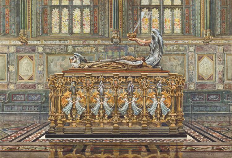 | Keywords: Arthur Robertson - Drawing for Alfred Gilbert's project for the tomb of the Duke of Clarence - Google Art Project.jpg watercolor on paper size cm 61 89 Arthur Robertson 1894 ~ signature bottomright ARO 2010 10 1850 1850 1905 1905 Arthur Male 808258 Robertson English 1850 - 1905 /collection/musee-dorsay-paris/artwork/drawing-for-alfred-gilberts-project-for-the-tomb-of-the-duke-of-clarence-arthur-robertson/810287/ ARO 2010 10 Arthur Robertson /artist/ah-robertson/4125651/ 4125651 /collection/musee-dorsay-paris/ Musée d ™Orsay Paris 433902 http //www musee-orsay fr/fr/accueil html 2/10/2012 4 11 09 PM /collection/musee-dorsay-paris/artwork/drawing-for-alfred-gilberts-project-for-the-tomb-of-the-duke-of-clarence-arthur-robertson/810287/ 1894 Bought in 2010 610 810287 True 1894 3/24/2012 10 44 51 AM 154908 http //www musee-orsay fr/en/collections/works-in-focus/architecture/commentaire_id/proposal-for-the-tomb-of-the-duke-of-clarence-22746 html tx_commentaire_pi1 5BpidLi 5D 850 tx_commentaire_pi1 5Bfrom drawing 1890 1900 w890 x h610 cm 1894 False 1 46704871060172 © Musée d'Orsay dist RMN / Patrice Schmidt Object drawing-for-alfred-gilberts-project-for-the-tomb-of-the-duke-of-clarence-arthur-robertson Drawing for Alfred Gilbert's project for the tomb of the Duke of Clarence d 890 © Musée d'Orsay dist RMN / Patrice Schmidt Dessin pour le projet d'Alfred Gilbert pour la tombe du duc de Clarence Bought in 2010 special url_id QQFBXQODUn_DBg PD-old-100-1923 1905 19th-century tombs in England Alfred Gilbert Arthur Robertson painter Google Art Project works by Arthur Robertson Prince Albert Victor Duke of Clarence and Avondale St George ™s Chapel Windsor Castle Tombs in Berkshire Watercolor drawings |
