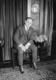 Keywords: ArthurFieldsSitting.jpg Photoportrait of U S singer and Vaudeville star Arthur Fields Fields wearing a 3-piece suit is sitting on chair in what looks like a home living room a cigarette in his right hand Bain News Service photo via Library of Congress website at http //hdl loc gov/loc pnp/ggbain 27689 Converted from TIFF to jpg and edges cropped before upload Not dated Looks c 1910s Uncredited photographer for Bain News Service PD-Bain Arthur Fields Sitting men 1910s portrait photographs Men smoking cigarettes Black and white photographic portraits of men Males with pince-nez |