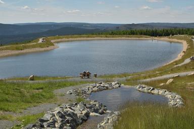 Keywords: artificial pond plateau quiet zone landscape mountains highlands braunlage worm mountain sky clouds blue