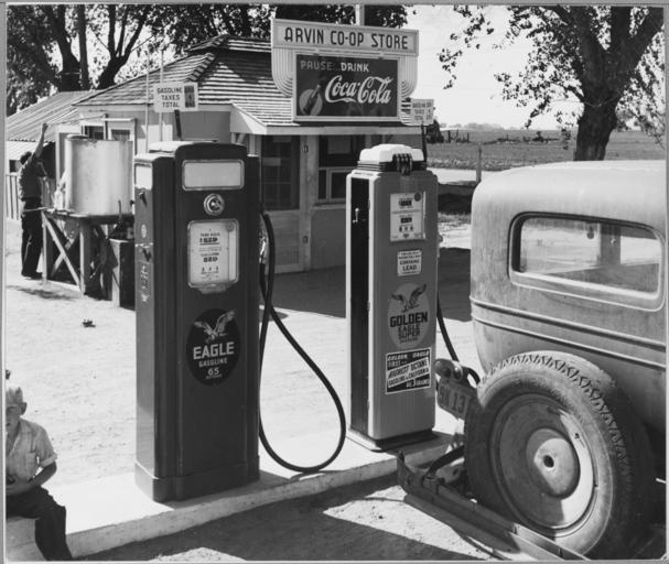 | Keywords: Arvin, Kern County, California. Co-op store and gas station established December 1939 in the Arvin F . . . - NARA - 521769.jpg Scope and content Full caption reads as follows Arvin Kern County California Co-op store and gas station established December 1939 in the Arvin Farm Labor Camp F S A by sixty camp members each of whom contributed 1 to start the enterprise The gas pumps are now one-third paid for and the store paid a 14 percent dividend in March 1940 General notes 521769 Local identifier 83-G-41525 Department of Agriculture Bureau of Agricultural Economics Division of Economic Information ca 1922 - ca 1953 NARA-Author Lange Dorothea 1895-1965 Photographer 1372774 <br /> Still Picture Records Section Special Media Archives Services Division NWCS-S National Archives at College Park 8601 Adelphi Road College Park MD 20740-6001 1940-04-11 Record group Record Group 83 Records of the Bureau of Agricultural Economics 1876 - 1959 Record group ARC 412 Photographic Prints Documenting Programs and Activities of the Bureau of Agricultural Economics and Predecessor Agencies compiled ca 1922 - ca 1947 documenting the period ca 1911 - ca 1947 Series ARC 521048 File unit File unit ARC Variant control numbers NAIL Control Number NWDNS-83-G-41525 Other versions <gallery> File Arvin _Kern_County _California _Co-op_store_and_gas_station_established_December_1939_in_the_Arvin_F_ _ _ _-_NARA_-_521769 tif tif File Arvin _Kern_County _California _Co-op_store_and_gas_station_established_December_1939_in_the_Arvin_F_ _ _ _-_NARA_-_521769 jpg jpg </gallery> NARA-cooperation PD-USGov Dorothea Lange Gas stations in California Arvin Historical petrol pumps Arvin California 1940 Automobiles in California 1940 in California NARA images of Kern County California Black and white photographs of buildings Black and white photographs of California |