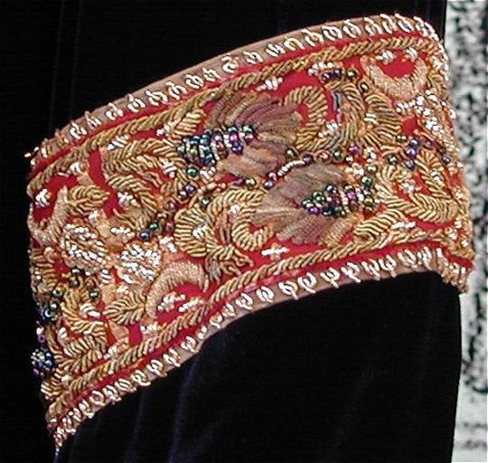 | Keywords: Arwen Sleeve Detail Close-up Enhanced.jpg Detail of sleeve embroidery from Arwen's mourning dress Window display of costumes and props from The Lord of the Rings film trilogy at Neiman Marcus Beverly Hills Detalle de un brocado del vestido de luto de Arwen Vitrina de muestra de trajes y objetos de la Trilogía cinematográfica de El Señor de los Anillos en Neiman Marcus Beverly Hills File Arwen_Sleeve_Detail_Close-up_Enhanced jpg at en wikipedia 2003-12 en wikipedia user PKM w en Wikipedia in English PKM The Lord of the Rings film trilogy Film costumes Arwen Middle-earth objects |