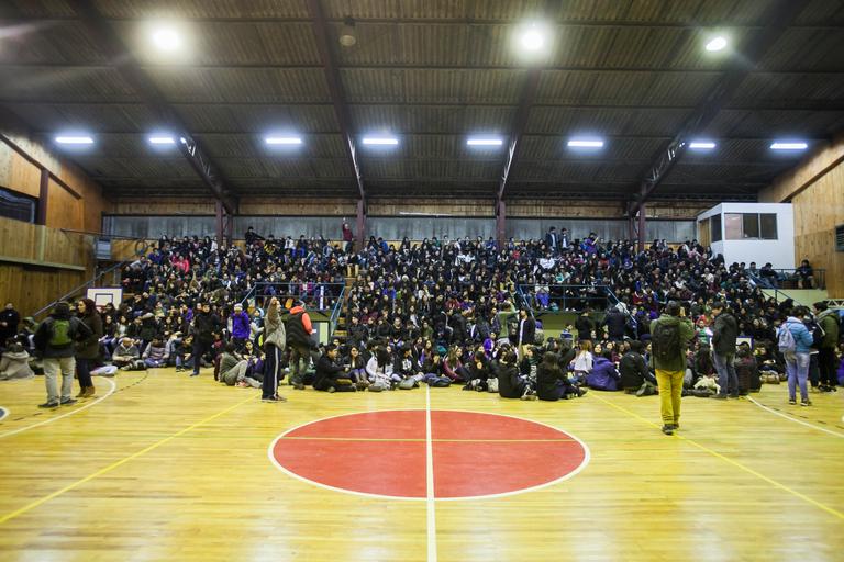 | Keywords: team sport sport hall Este proceso se realizó en el contexto de una asamblea general a la que llamó la Mesa Ejecutiva de la Federación de Estudiantes de la UMAG (FEUM) y contó con una masiva asistencia de alumnos, quienes reunidos en el Gimnasio del campus central, emitieron su preferencia a favor o en contra de sumarse a esta movilización a la que ya se ha plegado más de una decena de universidades a lo largo del país. Este proceso se realizó en el contexto de una asamblea general a la que llamó la Mesa Ejecutiva de la Federación de Estudiantes de la UMAG (FEUM) y contó con una masiva asistencia de alumnos, quienes reunidos en el Gimnasio del campus central, emitieron su preferencia a favor o en contra de sumarse a esta movilización a la que ya se ha plegado más de una decena de universidades a lo largo del país. |