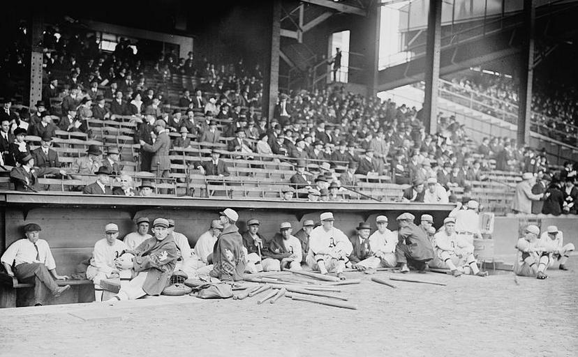 MAKE A MEME View Large Image AsDugout1914SeriesGame1.jpg en Philadelphia A's in dugout before Game 1 of 1914 World Series Shibe Park Phila PA Cropped http //lcweb2 loc gov/service/pnp/ggbain/17500/17523v jpg Bain News Service 1914-10-09 PD-Bain LOC-image ggbain 17523 ...
