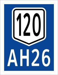 Keywords: Asian Highway 26 (120) sign.svg Route sign for the Pan-Philippine Highway/AH26 on the Marcos Road/Radial Road 10 and Roxas Boulevard/Radial Road 1 segments numbered as Highway 120 by the Department of Public Works and Highways own April 2 2015 9 06 PM GMT+8 TagaSanPedroAko Created with Inkscape Diagrams of route signs of Asian Highway Network |