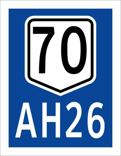 | Keywords: Asian Highway 26 (70) sign.svg Route sign for Pan-Philippine Highway/AH26 on its spur Highway 70 from Tacloban City to Ormoc and Cebu City via ferry own April 2 2015 7 49 PM GMT+8 TagaSanPedroako Created with Inkscape Diagrams of route signs of Asian Highway Network |