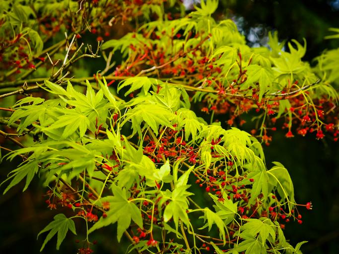 Keywords: asian japanese maple maple tree exotic blossom bloom plant nature close exotic tree exotics spring bloom exot flora red green macro botanical garden