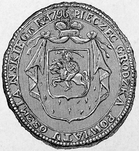| Keywords: Ašmiany, Pahonia. Ашмяны, Пагоня (1796).jpg Ашмянскага павету з ге бам «Пагоня» «Pahonia» Jankowski Cz Powiat oszmiański materjały do dziejów ziemi i ludzi Cz 1 Petersburg Kraków 1896 S 87 author before 1896 PD-old History of Ašmiany Historical images of Pahonia Coats of arms of Ašmiany |