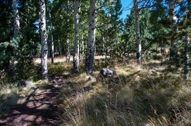 Keywords: arizona aspen loop aspenloop aspen loop trail aspenlooptrail aspen loop trail no. 73 aspenlooptrailno73 aspen nature loop aspennatureloop aspen nature trail aspennaturetrail coconino national forest coconinonationalforest flagstaff flagstaff ranger district flagstaffrangerdistrict forest service forestservice national forest nationalforest san francisco mountain sanfranciscomountain san francisco peaks sanfranciscopeaks usfs forest hiking outdoors trail united states unitedstates outdoor tree plant On the western flank of the San Francisco Peaks, Aspen Loop Trail is a moderate 2 mile loop trail descending through a beautiful forest of aspen, fir, and pine to meet the Arizona National Scenic Trail Passage 34. The trail offers views of the San Francisco Peaks, Kendrick Mountain, and hills to the west of the Peaks. The trail splits at around the half-mile mark. Follow either fork to the Arizona Trail, and follow the signs along the Arizona Trail to the return trail to complete the loop. The trailhead is at the Humphreys Trailhead just below the Arizona Snowbowl. Photo by Deborah Lee Soltesz, September 2015. Credit: U.S. Forest Service, Coconino National Forest. For more information about this trail, see the Aspen Loop trail description on the Coconino National Forest website. On the western flank of the San Francisco Peaks, Aspen Loop Trail is a moderate 2 mile loop trail descending through a beautiful forest of aspen, fir, and pine to meet the Arizona National Scenic Trail Passage 34. The trail offers views of the San Francisco Peaks, Kendrick Mountain, and hills to the west of the Peaks. The trail splits at around the half-mile mark. Follow either fork to the Arizona Trail, and follow the signs along the Arizona Trail to the return trail to complete the loop. The trailhead is at the Humphreys Trailhead just below the Arizona Snowbowl. Photo by Deborah Lee Soltesz, September 2015. Credit: U.S. Forest Service, Coconino National Forest. For more information about this trail, see the Aspen Loop trail description on the Coconino National Forest website.